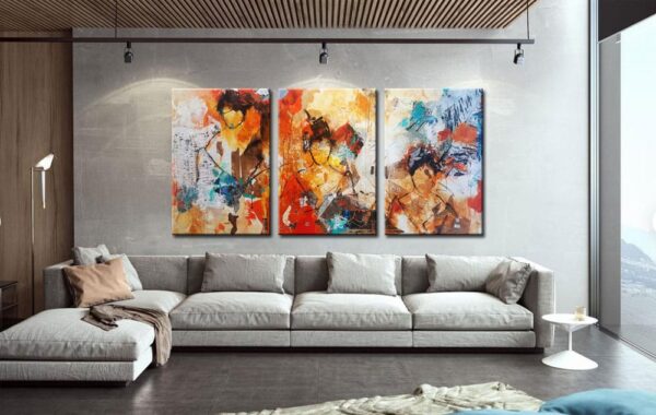 Voor wie houdt van moderne kunst met een menselijke dimensie is Abstract drieluik schilderij People een opvallend kunstwerk dat warmte, expressie en creativiteit samenbrengt in drie harmonieuze panelen.