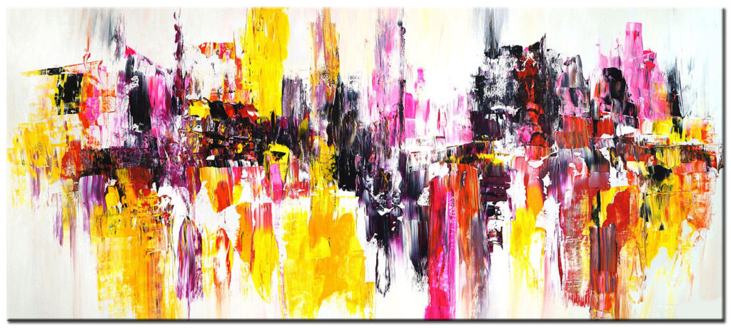 Dankzij het royale formaat komt dit schilderij optimaal tot zijn recht op een grote wand. Plaats het bijvoorbeeld boven de bank, in een ruime eetkamer of in een modern kantoor, waar het de ruimte vult met dynamiek en sfeer. Het XL-formaat maakt van dit schilderij niet alleen decoratie, maar een kunstwerk dat een interieur echt versterkt.