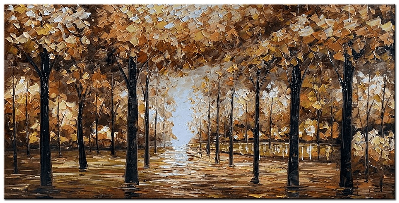 Dankzij de abstracte benadering blijft het schilderij toegankelijk en veelzijdig. Het bos is herkenbaar zonder letterlijk te worden, waardoor het werk zich moeiteloos laat combineren met zowel moderne als tijdloze interieurs. De warme herfstkleuren brengen visuele rust, terwijl de gelaagdheid het schilderij interessant houdt om naar te blijven kijken.