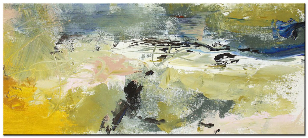 Dit groot abstract schilderij is geschilderd met olieverf op doek en brengt een frisse en serene sfeer in elke ruimte. Dankzij het evenwicht tussen rustige kleurtinten en dynamische vormen past het moeiteloos in zowel moderne als klassieke interieurs. Hang het in de woonkamer, slaapkamer of op kantoor voor een vleugje levendigheid en verfijning.