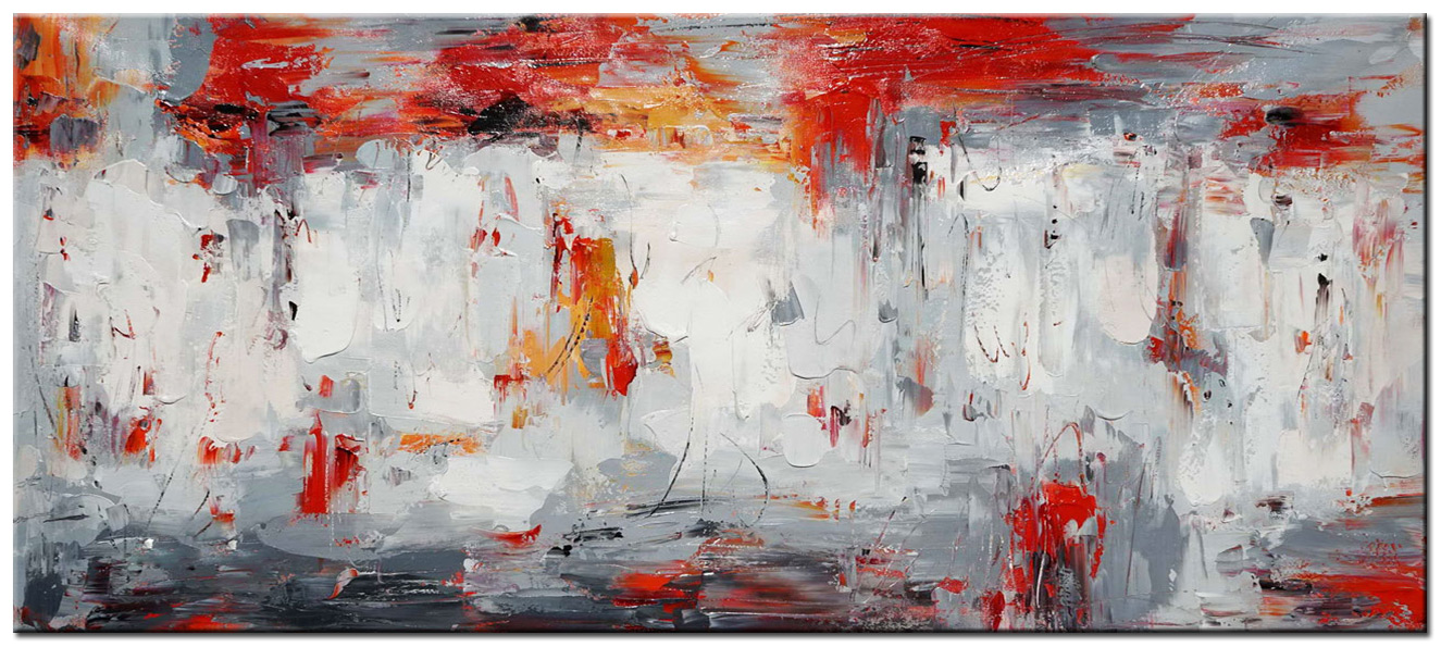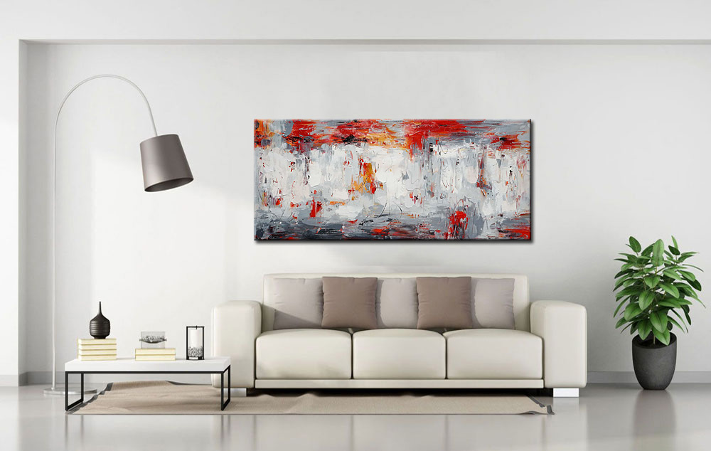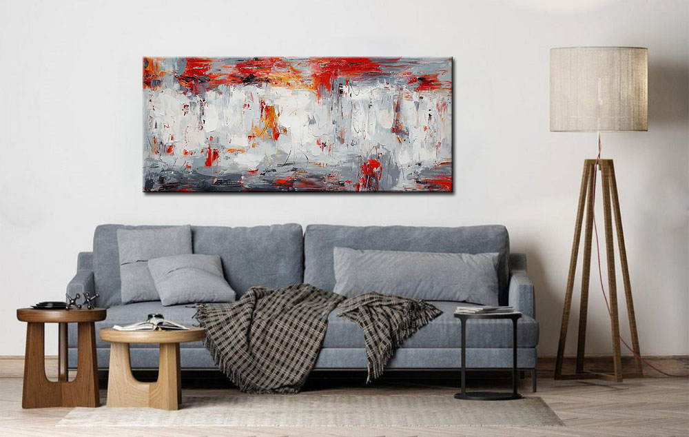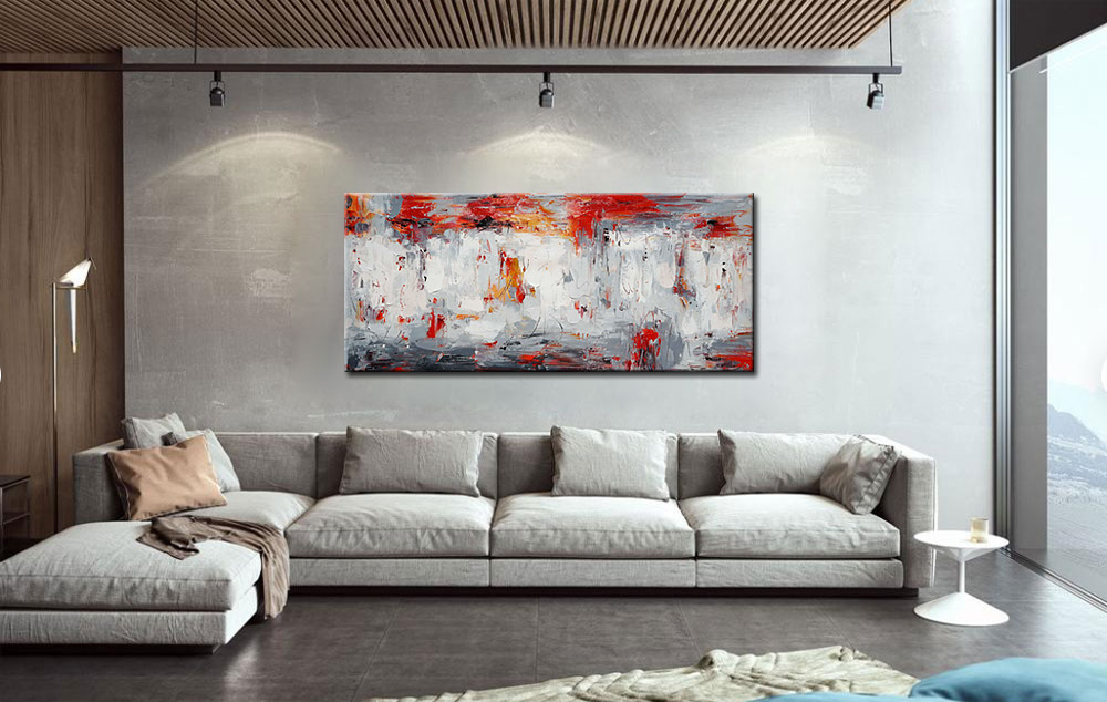 Dit grote abstracte schilderij is perfect voor wie zijn woonkamer, eetkamer of kantoor wil verrijken met een krachtig kunstwerk. De rode accenten brengen energie en passie, terwijl de grijze en witte tinten rust en balans toevoegen. Het resultaat is een boeiende compositie die emoties oproept en tegelijkertijd harmonie uitstraalt.