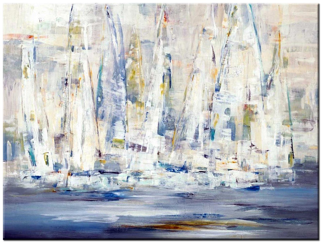 Als groot abstract schilderij voegt dit werk visuele rust toe aan de wand, terwijl de compositie voldoende spanning behoudt. Abstract schilderij Witte Zeilen vormt daarmee een evenwichtige keuze voor wie zoekt naar kunst met een maritieme sfeer en een heldere uitstraling.