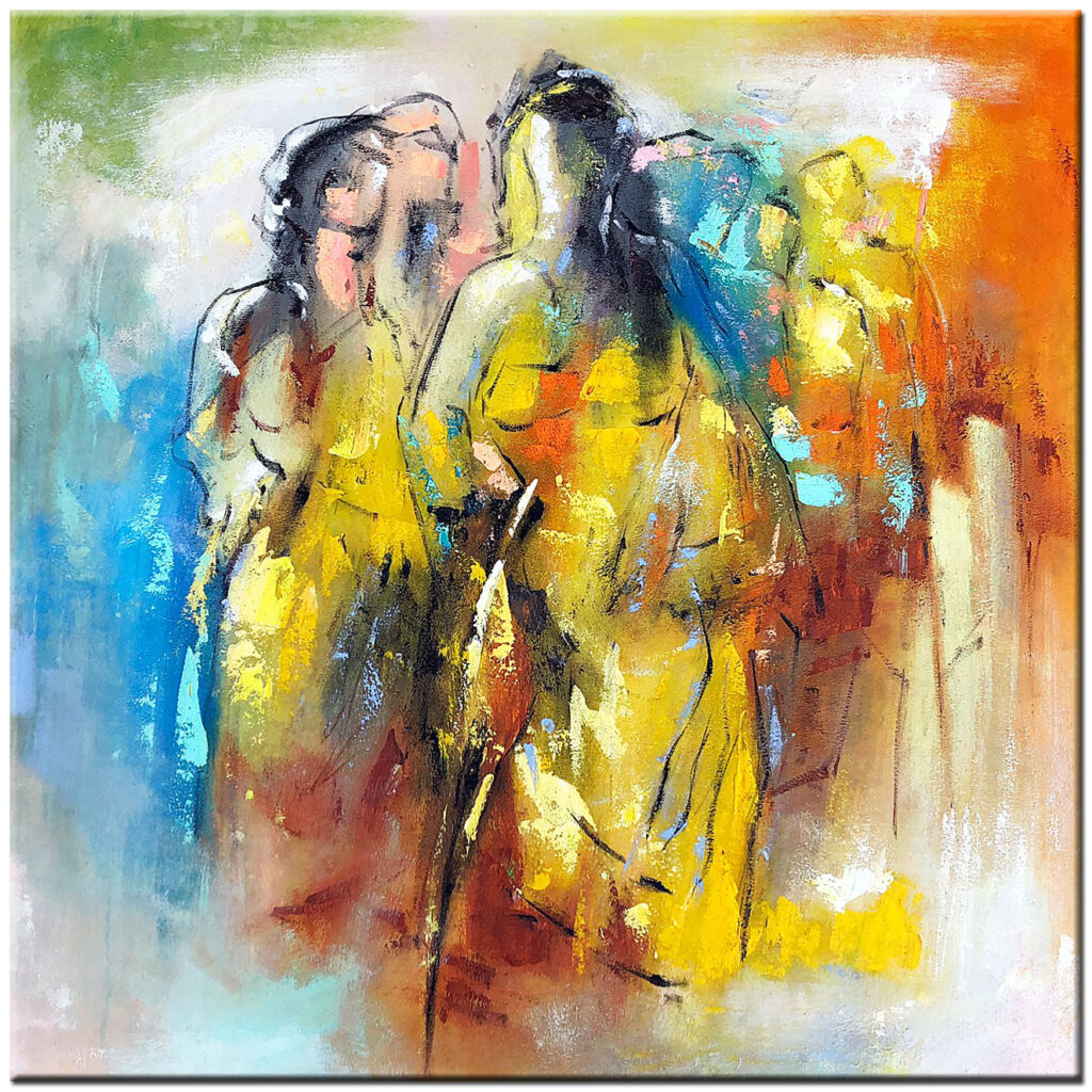 Het schilderij is volledig met de hand geschilderd in olieverf op canvas. Door de subtiele penseelstreken en kleurgebruik heeft het kunstwerk een warme, natuurlijke uitstraling. Geen massaproductie maar ambachtelijk werk.