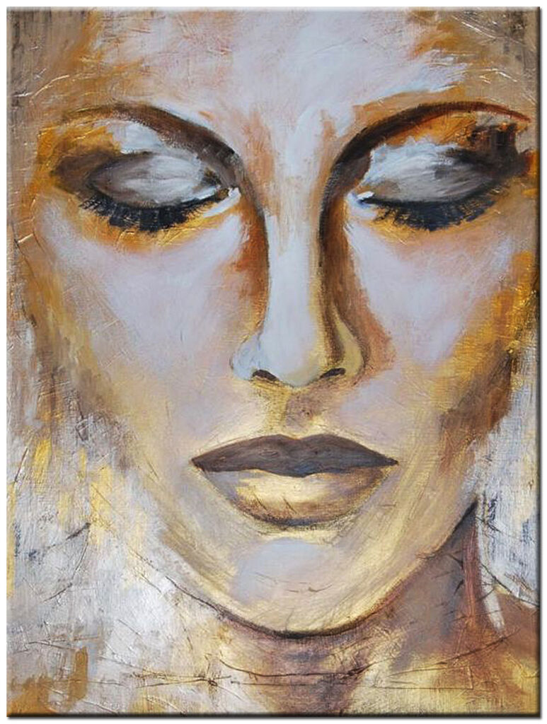 Dromerige Ogen dame modern schilderij is een intiem en krachtig portret van een vrouw, in close-up weergegeven. De nadruk ligt op haar dromerige blik, volle lippen en zachte gelaatstrekken, subtiel geschilderd in warme aardetinten en lichte contrasten.