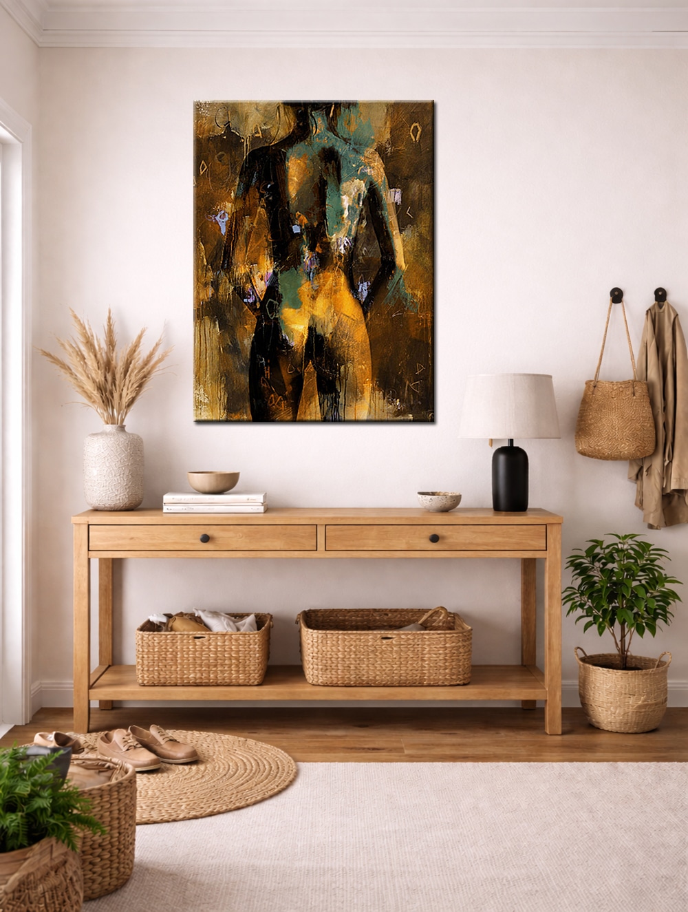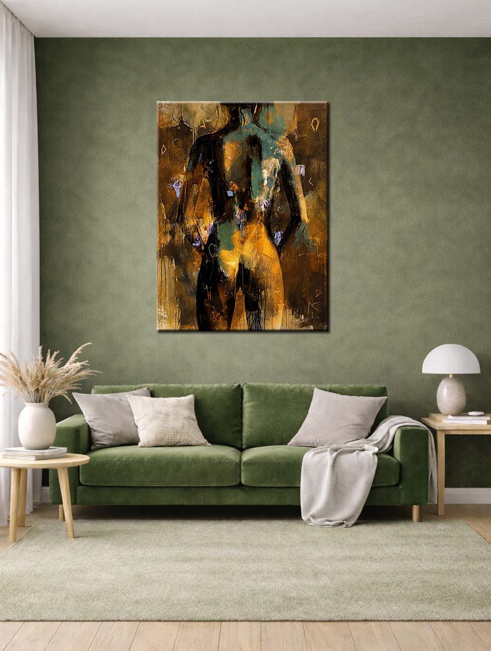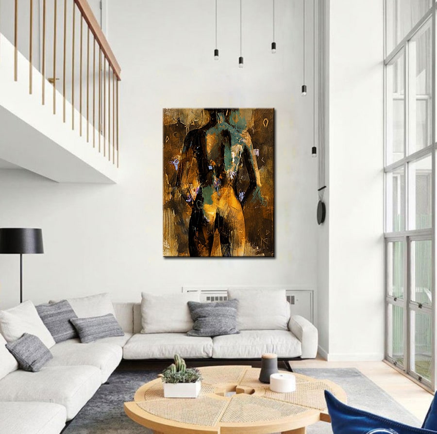 Dit olieverf schilderij past bijzonder goed in een interieur waar rust, sfeer en kunstzinnige diepgang samenkomen, zoals een slaapkamer, stijlvolle woonkamer of hotelruimte. Door de abstract figuratieve stijl blijft het werk elegant en tijdloos, terwijl het sensuele karakter duidelijk voelbaar is.