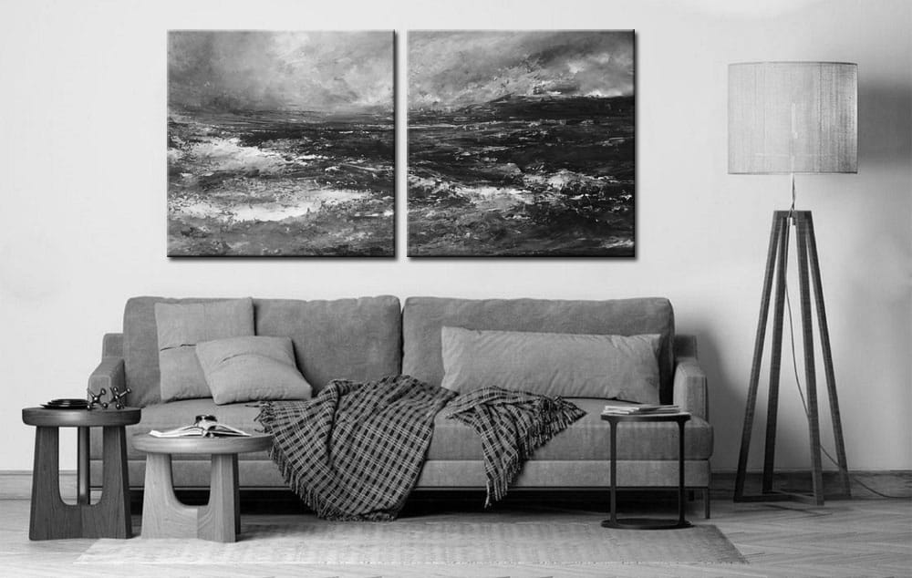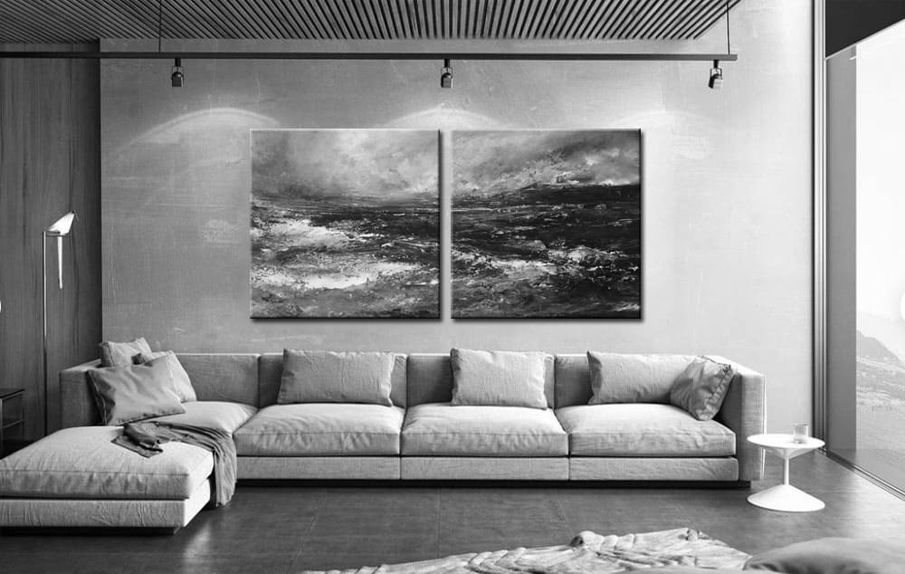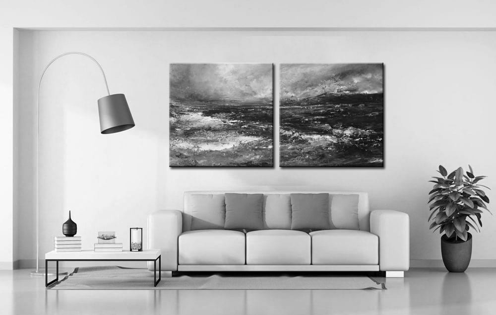 In dit werk komen elementen uit het tweeluik schilderij, het zwart wit schilderij, het storm schilderij en het landschap schilderij samen. De neutrale kleurstelling maakt het eenvoudig te combineren met diverse materialen en woonstijlen. De hoge mate van structuur geeft bovendien een meerlaagse diepte die je telkens opnieuw laat kijken. Voor wie op zoek is naar een krachtig kunstwerk dat rust en spanning weet te verenigen, is dit tweeluik een sterke keuze.
