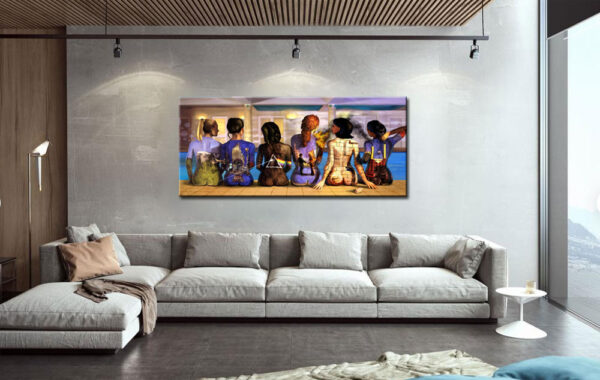Als olieverf schilderij heeft dit kunstwerk een rijke structuur en diepte die de details extra kracht geven. Elke penseelstreek draagt bij aan de levendigheid, terwijl de mix van realistische en artistieke elementen zorgt voor een unieke uitstraling. Hierdoor wordt dit schilderij meer dan decoratie: het is een expressie van muziekgeschiedenis en moderne kunst.