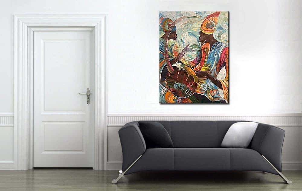Binnen een interieur waarin moderne schilderijen zorgen voor karakter en energie, vormt dit werk een krachtig visueel middelpunt. Tegelijkertijd sluit het schilderij inhoudelijk aan bij muziek schilderijen, waarin ritme, dynamiek en samenspel centraal staan.