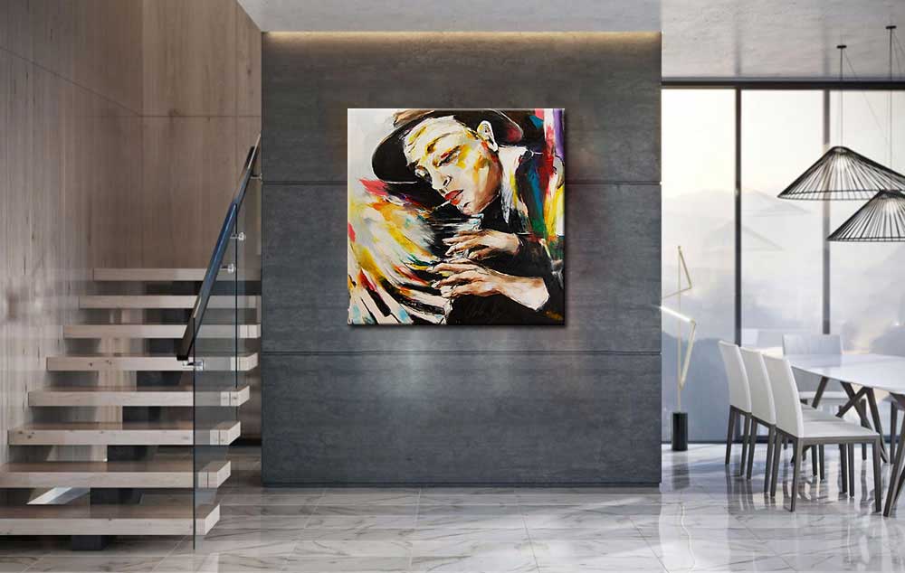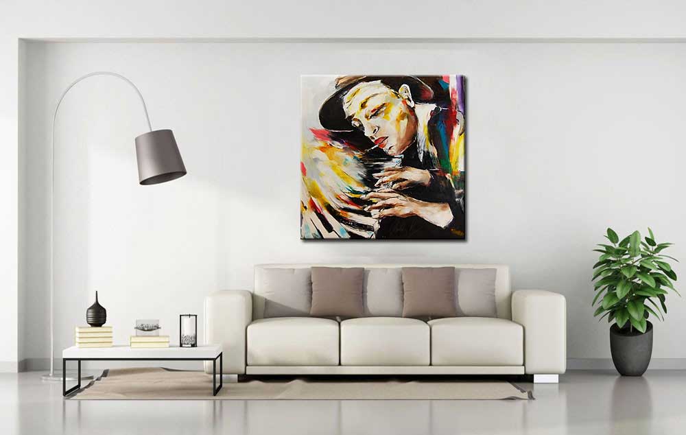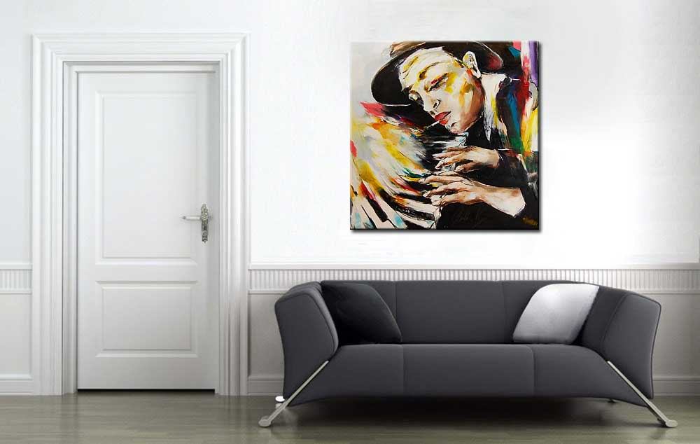 Pianospeler modern schilderij.