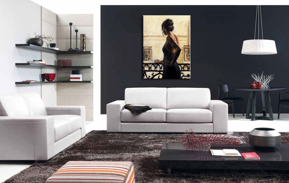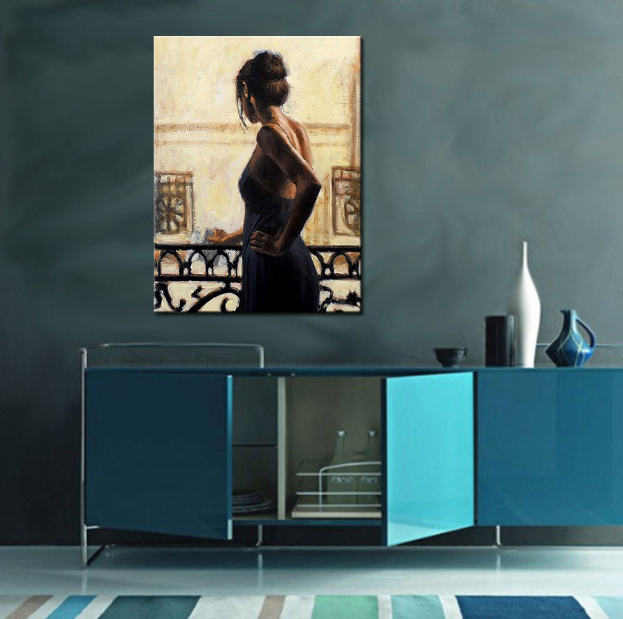 Sur le Balcon vrouw modern schilderij 90x120cm