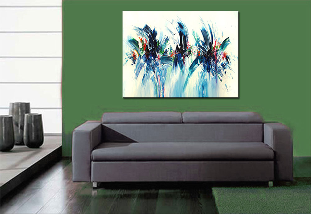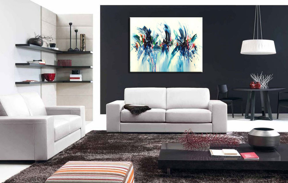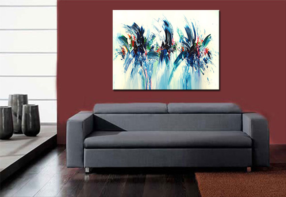 Dankzij het opvallende kleurgebruik en de moderne uitstraling past het abstract schilderij Blue Explosion uitstekend in diverse interieurs. Het kan dienen als blikvanger boven een bank of dressoir, maar ook als stijlvol accent in een hal of kantoorruimte. Afhankelijk van de lichtinval verandert de uitstraling van het doek, waardoor het schilderij de hele dag door nieuwe facetten laat zien.